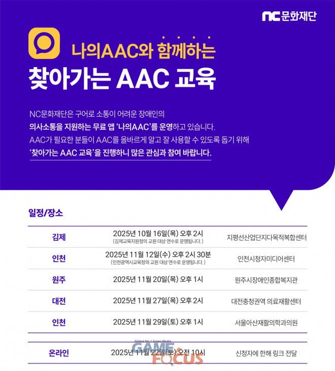 NC문화재단(이사장 박명진)이 작년에 이어 보완대체의사소통(이하 AAC) 앱 ‘나의AAC’를 활용한 현장 교육 프로그램 ‘찾아가는 AAC 교육’ 시즌2를 진행한다.