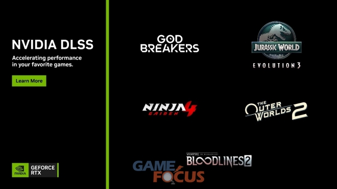 한편, 엔비디아(NVIDIA) RTX 기술은 800개 이상의 게임에서 지원되며, 이번 주에는 신규 게임 5종에 DLSS 기술을 적용해 게이밍 경험을 한층 강화한다. ‘아우터 월드 2(The Outer Worlds 2), ‘뱀파이어: 더 마스커레이드 – 블러드라인 2(Vampire: The Masquerade – Bloodlines 2)’, ‘쥬라기 월드 에볼루션 3(Jurassic World Evolution 3)’에 DLSS 4 멀티 프레임 생성(Multi Frame Generation)을 지원하며, ‘닌자 가이덴 4(NINJA GAIDEN)’, ‘갓브레이커즈(GODBREAKERS)‘에 DLSS 슈퍼 레졸루션(Super Resolution)을 지원한다.