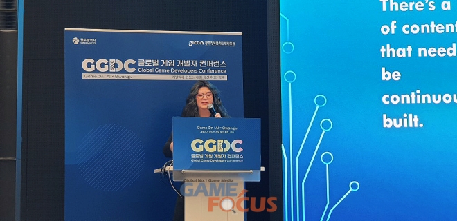 23일 광주광역시 국립아시아문화전당 문화정보원에서 개막한 글로벌 게임 개발자 컨퍼런스(GGDC) 2025 첫 연사로 나선 스위프티 게임 앤 컨설팅 창업자인 킴벌리 스위프트 대표가 AI 혁신을 위해 AI 자체보다 그 AI를 다룰 전문가가 더 중요하다고 역설했다.
