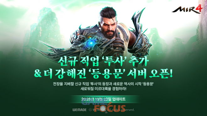 (주)위메이드(대표 박관호)의 MMORPG ‘미르4’가 오늘(23일) 신규 직업 ‘투사’와 성장 특화 서버 ‘등용문’을 공개했다.