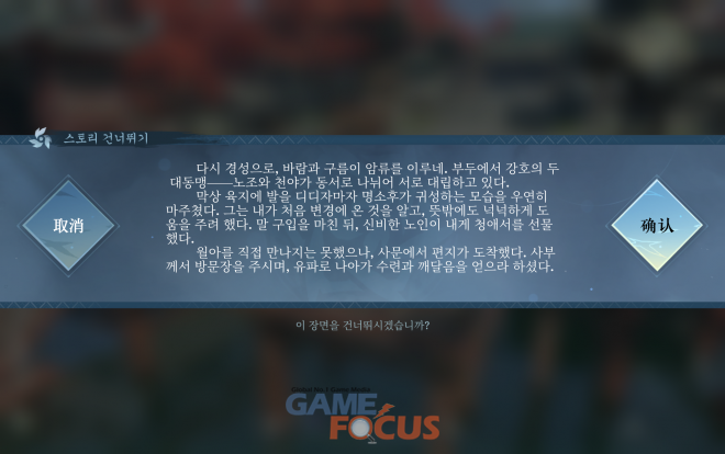 이렇게 방대한 무협 세계를 모험하며 나만의 이야기를 만들어 가고, 또 여러 차례 경험할 수 있다는 점은 상당한 매력 포인트다. 물론 시간이 부족한 이용자들을 배려해 배속, 스킵 및 요약 등의 편의 기능도 제공하고 있다.