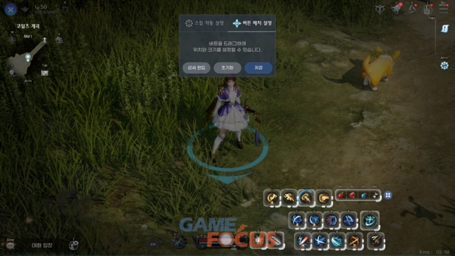 ② 스킬 그리드: 스킬 그리드는 스킬 버튼의 위치와 크기를 자유롭게 조정하여, 모험가님에게 가장 편한 전투 조작 환경을 구성할 수 있는 시스템으로 설정 모드에서 버튼을 드래그하여 원하는 위치로 이동할 수 있으며, 버튼의 우측 하단을 드래그 하면 버튼 크기도 자유롭게 조절할 수 있다.