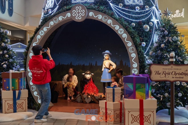 스타필드 수원 그랜드 아트리움 공간에서 내년 1월 1일까지 운영되는 이번 팝업에는 대형 크리스마스 트리와 함께 ‘눈 내린 던바튼’ 콘셉트의 다양한 조형물, 포토존 등이 마련됐다. 먼저, 대형 트리에는 게임 속 NPC인 몰리, 로나, 판의 모형이 설치돼 ‘마비노기 모바일’의 감성을 담아낸 메인 포토존으로 꾸며졌다.
