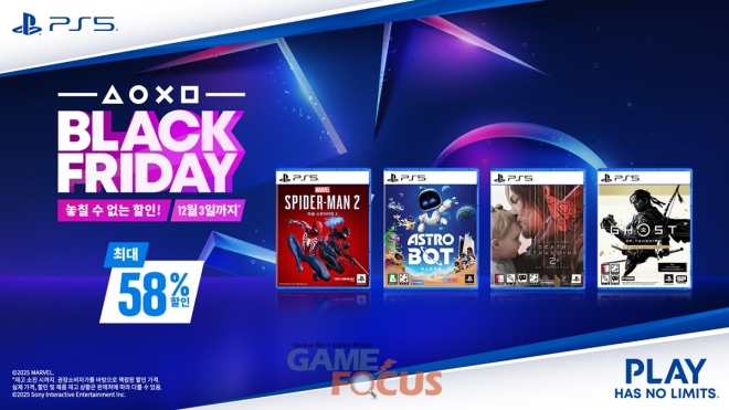 11월 20일(목)부터 2025년 최대 규모의 할인 행사 중 하나인 ‘Black Friday’ 프로모션이 시작된다. PlayStation은 PS5 Pro를 포함한 모든 PS5 콘솔 라인업부터 PlayStation Portal 리모트 플레이어, PULSE Explore 이어버드, PULSE Elite 무선 헤드셋, PlayStation VR2, DualSense 무선 컨트롤러, 인기 타이틀, 그리고 PlayStation Plus를 할인된 가격으로 제공한다.