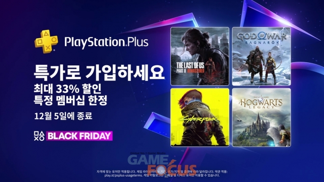 PlayStation Plus 멤버십에도 대규모 할인이 적용되어 11월 21일부터 12월 5일까지 12개월 멤버십을 최대 33% 할인된 가격으로 가입할 수 있으며, 기존 회원도 스페셜 또는 디럭스 플랜으로 업그레이드 시 남은 멤버십 기간에 대해 33% 할인 혜택을 받을 수 있다. 스페셜 및 디럭스 플랜 구독자는 The Last of Us Part II, 갓 오브 워 라그나로크, 사이버펑크 2077, 호그와트 레거시 등 인기 타이틀을 게임 카탈로그에서 즐길 수 있으며, 모든 PlayStation Plus 멤버는 월간 게임, 독점 할인, 온라인 멀티플레이 등의 혜택을 누릴 수 있다.