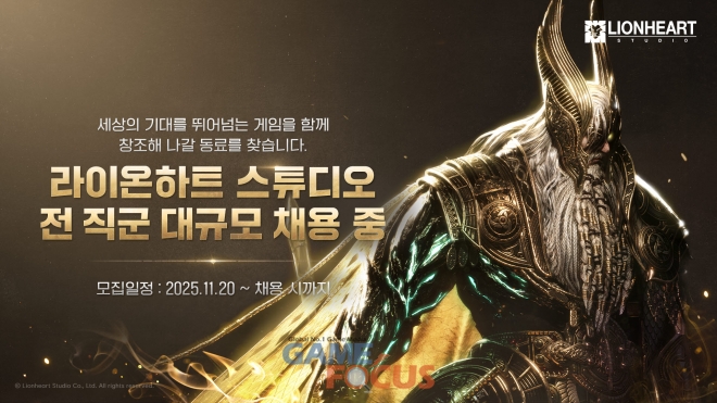 라이온하트 스튜디오 채용 관계자는 “라이온하트 스튜디오는 세상의 기대를 뛰어넘는 게임을 함께 만들어갈 인재를 기다리고 있다”며, “함께 성장하며 글로벌 시장에서 새로운 도전을 이끌어갈 분들의 많은 관심을 바란다”고 전했다.