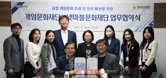 게임문화재단(이사장 유병한)과 넷마블문화재단(이사장 방준혁)은 11월 19일 긍정 게임문화 조성 및 인식 확산을 위한 업무협약(MOU)을 체결했다.