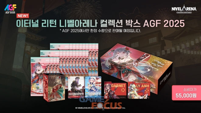 니벨아레나 공식 X 계정에 따르면 오는 30일부터 ‘2025 코리아 챔피언십(이하 KCS) 2nd 시즌’ 예선전이 진행되며 참가자들은 이를 통해 2025 KCS 2nd 시즌 최종전 참가권과 이터널 리턴 니벨아레나 제품을 획득할 수 있다. 또한 니벨아레나는 올해 12월 일산 킨텍스에서 열리는 ‘AGF 2025’에 참가하여 신규 IP 이터널 리턴 제품을 전시 및 판매는 물론, 현장에서 직접 플레이할 수 있는 강습회도 운영할 예정이다.