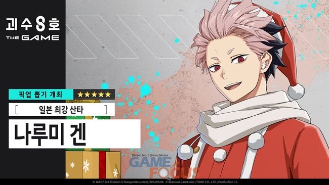 아카츠키 게임즈(Akatsuki Games)가 토호(TOHO CO), 프로덕션 I.G.(Production I.G.)와 공동으로 제작해 정식 서비스를 시작한 RPG '괴수 8호 THE GAME'에 메인 스토리 챕터6 '크리스마스 이브 탈환 작전'과 함께, 신규 ★5 캐릭터 [일본 최강 산타] 나루미 겐을 정식 업데이트했다고 밝혔다.