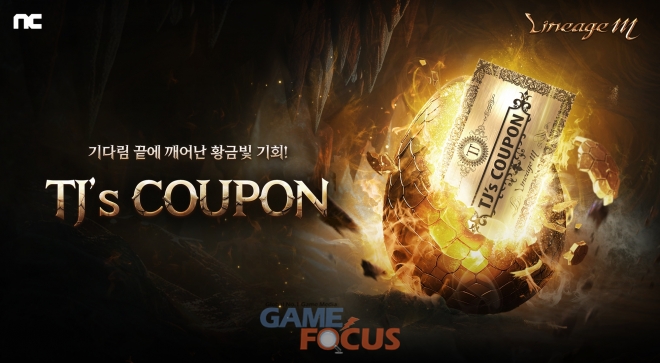 엔씨(NC)는 업데이트를 기념해 총 5종의 ‘TJ 쿠폰’을 선물한다. 이용자는 12월 17일 정기점건 전까지 인게임 상점에서 아데나(게임 내 재화)로 ‘TJ 쿠폰 선물 상자’를 구매할 수 있다. 상자를 개봉하면 ‘TJ쿠폰 – 스킬 합성’을 획득한다. 게임에 접속만해도 출석체크 보상으로 ▲TJ 쿠폰 – 스페셜 상점 장비 복구 ▲TJ 쿠폰 – 스페셜 마법인형 합성 ▲TJ 쿠폰 – 스페셜 변신 합성 ▲TJ 쿠폰 – 스페셜 성물 합성을 받을 수 있다.