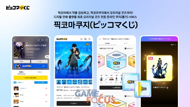 한편, 픽코마쿠지는 오늘부터 ▲TV애니메이션 나 혼자만 레벨업(TVアニメ『俺だけレベルアップな件』) ▲남편을 내 편으로 만드는 방법(夫を味方にする方法) ▲격투 스킬을 연마한 최강 네크로맨서(格闘スキルを極めた最強ネクロマンサー) ▲공백을 채우는 결혼~기한이 정해진 공작 부인은 굴하지 않는다~(穴うめ結婚~期限つき公爵夫人はくじけない~) 등 픽코마에서 큰 사랑을 받으며 많은 독자와 팬을 보유 하고 있는 4 작품의 쿠지(뽑기) 서비스를 시작한다. 픽코마쿠지는 일본에 한해 운영된다.