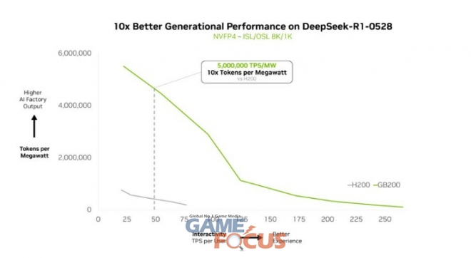 엔비디아 GTC 워싱턴 D.C.(GTC Washington D.C.)에서 엔비디아 창립자 겸 CEO 젠슨 황(Jensen Huang)은 GB200 NVL72가 딥시크-R1 모델에서 엔비디아 호퍼(Hopper) 대비 10배 성능을 제공한다고 강조했으며, 이러한 성능은 다른 딥시크 계열 모델에도 동일하게 적용된다고 밝혔다.