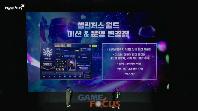 유니온 레벨 1만 이상 달성, 295레벨 이상 캐릭터 보유, 유니온 챔피언 S등급 이상 캐릭터 3개 이상 등록 등 정해진 조건의 다양한 기록을 보유한 이용자도 한데 모인 가운데, 공통점을 보유한 이용자끼리 모여 앉은 3개의 관 사이를 김창섭 디렉터와 성승헌 MC가 이동하며 각 관에 적합한 겨울 대규모 업데이트를 발표했다.