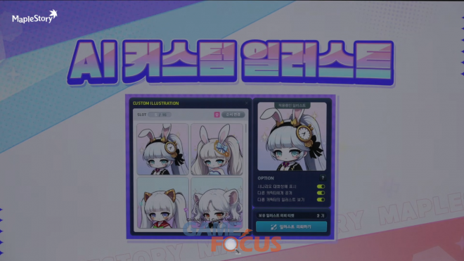 이 밖에도, ‘메이플스토리’ 직업 일러스트에 기반해 메이플 홈 등 게임과 연계되는 실물 굿즈 카드 ‘메이플스토리 컬렉션 카드’를 출시하고, AI를 활용해 스토리 퀘스트에서 도트 캐릭터를 일러스트로 변형한 모습을 감상할 수 있는 ‘AI 커스텀 일러스트’ 기능을 오픈 베타로 운영한다.