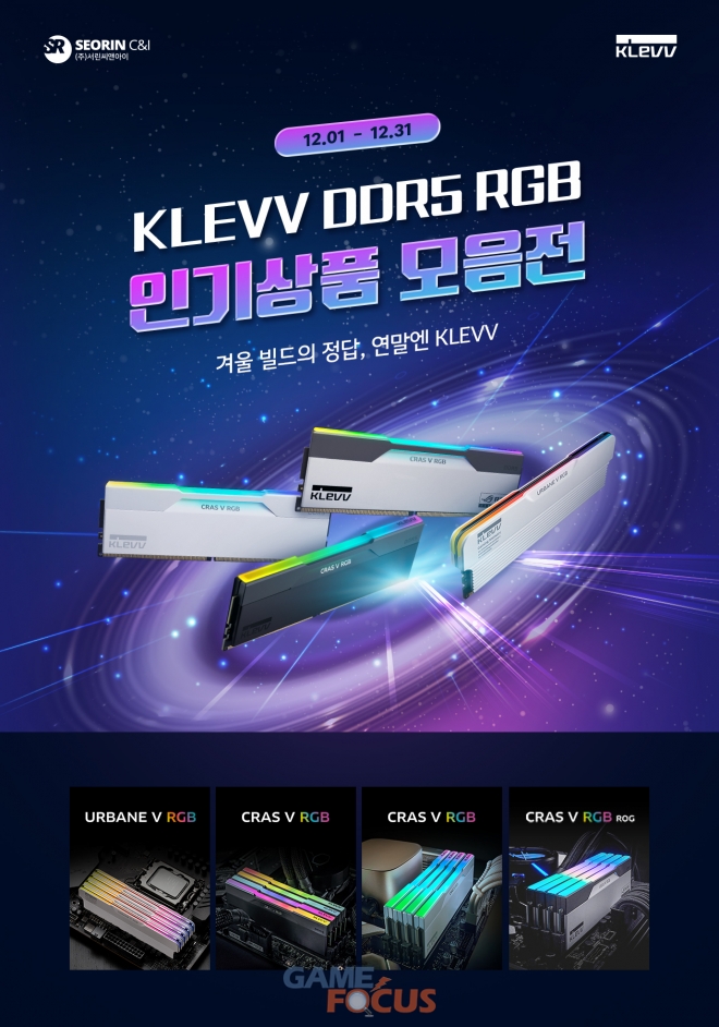 서린씨앤아이(대표: 전덕규)가 IT 전문 쇼핑몰 컴퓨존과 함께 G.SKILL, ESSENCORE KLEVV DDR5 RGB 메모리 인기상품 모음전을 진행한다고 밝혔다. 이번 행사는 2025년 12월 1일부터 12월 31일까지 한 달간 운영되며, RGB 튜닝 수요가 높은 하이엔드 게이밍 PC와 크리에이터용 시스템을 겨냥한 구성으로 마련됐다.