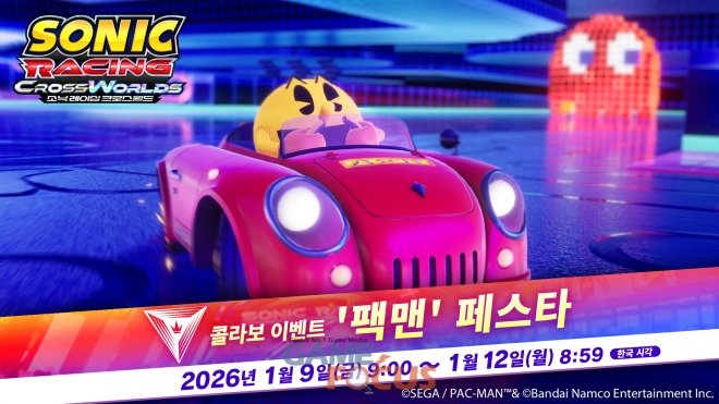세가퍼블리싱코리아(대표 사이토 고)는 현재 절찬 판매 중인 『소닉 레이싱 크로스월드』의 유료 DLC 제3탄 '팩맨 팩'을 2026년 1월 8일(목) 배포했다.