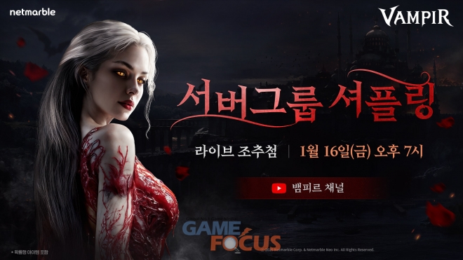 라이브 방송은 오늘(16일) 오후 7시에 진행되며, 권이슬 아나운서가 출연해 서버 그룹 셔플링을 진행한다. 서버 그룹 셔플링은 쟁탈전과 게헨나 전장의 매칭 서버를 결정하는 것으로 '뱀피르'의 핵심 콘텐츠와 직결되는 요소다.