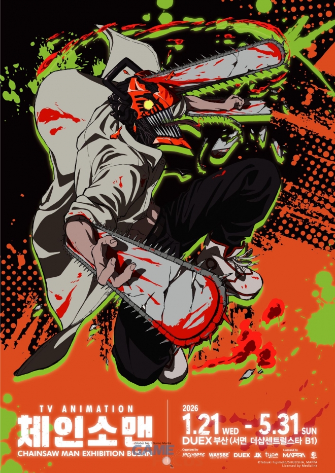 ‘TV애니메이션 체인소 맨 展’은 일본 만화가 후지모토 타츠키(Tatsuki Fujimoto)의 원작을 기반으로 세계 최고의 애니메이션 제작사 마파(MAPPA)가 제작한 TV애니메이션 기반의 전시다. 2023년 도쿄에서 처음 개최된 이후, 홍콩과 대만을 거쳐 지난 7월 한국에 상륙해 한국 관객들과 만났다. 특히 ‘TV애니메이션 체인소 맨 展’은 지난해 9월 개봉한 극장판 체인소 맨: 레제편 흥행과 맞물려, 서울 홍대에서 관객 몰이에 성공, 2주간 연장까지 돌입하며 관객들의 큰 호응을 얻었다.