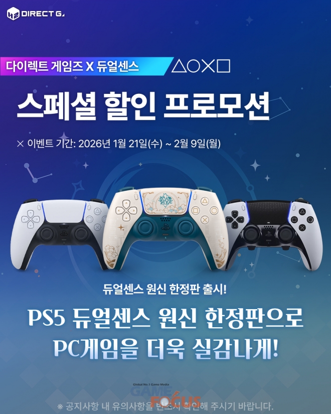 21일부터 진행되는 ‘다이렉트 게임즈 X 듀얼센스’ 이벤트 기간 동안, 다이렉트 게임즈에서 ‘듀얼센스 무선 컨트롤러 – 원신 한정판’을 구매한 유저를 대상으로 네이버페이 포인트 쿠폰 증정 이벤트를 실시한다. 해당 쿠폰은 주문 건당 1회 제공되며, 2026년 2월 28일(토)까지 교환 가능하다.