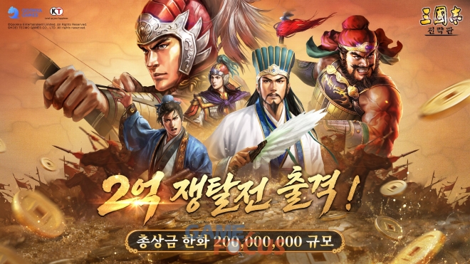 쿠카게임즈는 자사가 서비스하고 있는 삼국지 소재의 시즌제 모바일 전략 시뮬레이션 게임(SLG) ‘삼국지 전략판’이 연도 시나리오 ‘정군산 전투’ 오픈과 함께 총 2억 원 규모의 대형 시즌 이벤트 ‘2억 쟁탈전’을 진행한다고 23일 밝혔다.