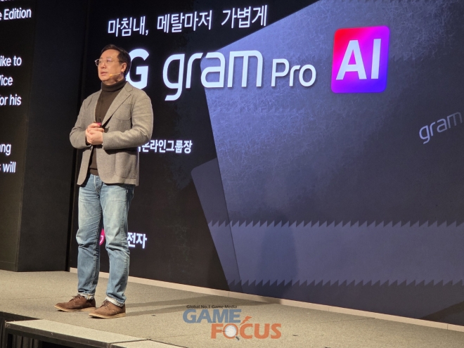 LG 전자의 장진혁 전무는 매 시리즈마다 초경량을 지향한 ‘LG 그램’ 시리즈 신작 ‘LG 그램 AI’의 정보를 공개했다.