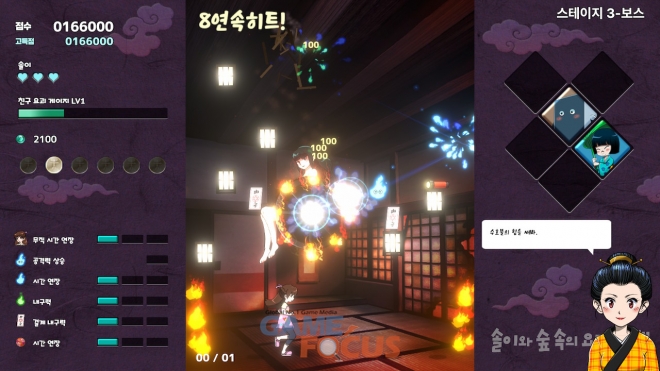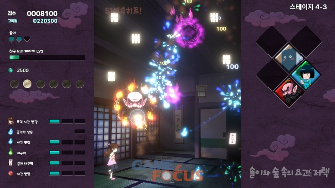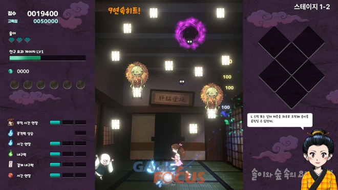 스테이지를 클리어할 때마다 동료가 되는 '친구 요괴'의 힘으로 게임을 유리하게