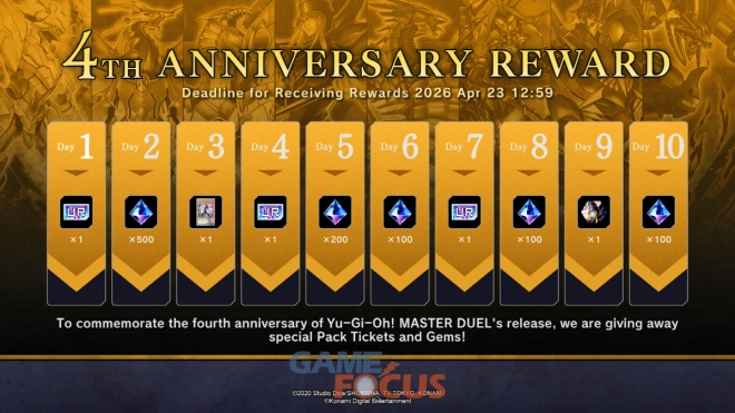 코나미디지털엔터테인먼트(Konami Digital Entertainment Limited, 이하 코나미)는 대전형 카드 게임 ‘유희왕 마스터 듀얼’에서 글로벌 서비스 4주년을 기념해 다양한 이벤트를 실시한다고 6일 밝혔다.