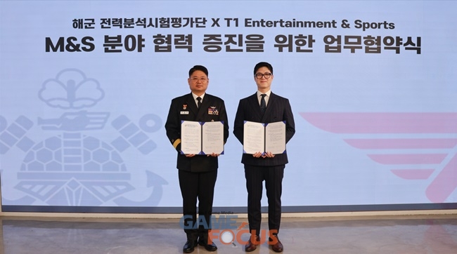 T1이 12일, 대한민국 해군 전력분석시험평가단과 미래 디지털 작전환경에 대비한 협력 강화를 위해 업무협약(MOU)을 체결했다. 이번 협약식은 서울 강남 T1 사옥 회의실에서 진행됐다.