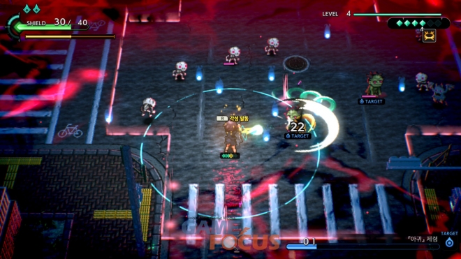 실제 플레이해 보니 저스트가드, 저스트회피와 같은 액션 조작이 들어가는, 단순 전방위 슈팅보다는 전방위 슈팅 액션 장르라 해야할 것 같은 게임이었다.