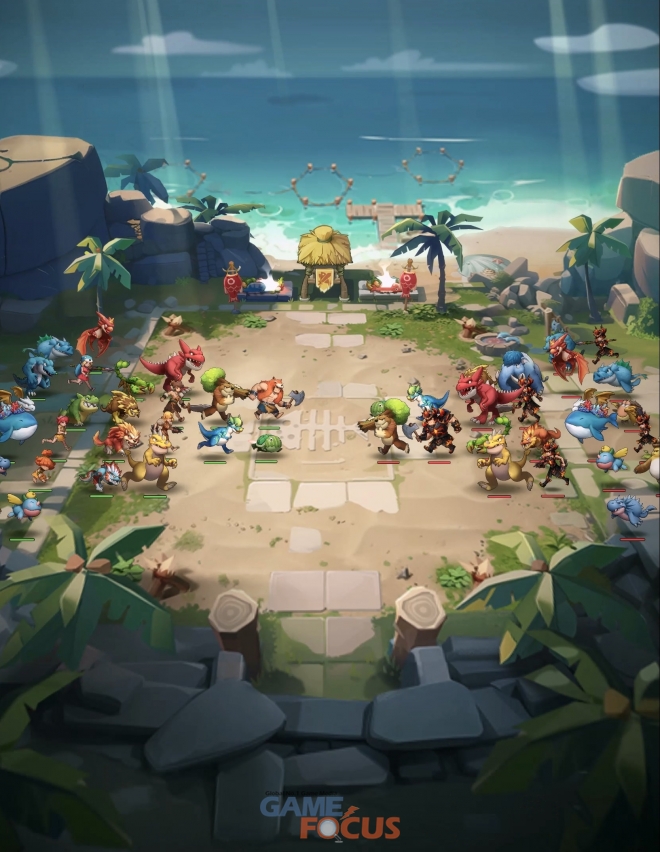 <스톤에이지 키우기>의 특징은 압도적인 규모의 덱 구성이다. 이용자는 6명의 조련사와 18마리의 펫을 배치해 총 24기에 달하는 군단급 덱을 꾸리고 자신만의 전략을 펼칠 수 있다. 특히 원작의 강력한 보스가 등장하는 대규모 레이드 콘텐츠 ‘강림전’은 수많은 펫들이 동시 출전하는 압도적인 스케일의 전투 경험을 제공한다.