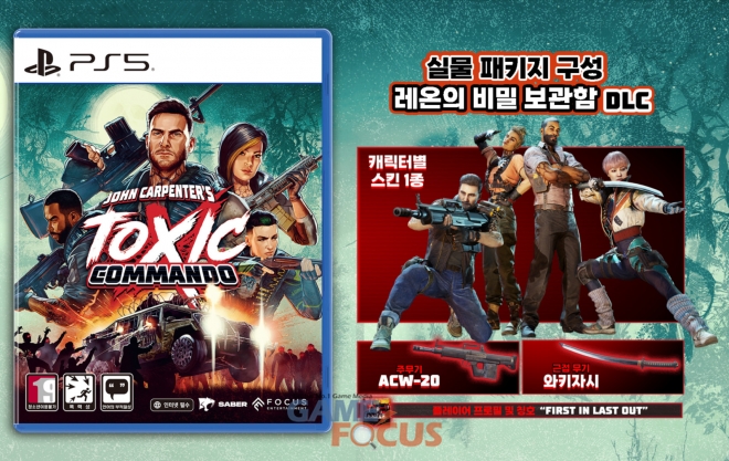 (주)에이치투 인터렉티브(이하 H2 INTERACTIVE, 대표 허준하)는 ‘세이버 인터랙티브(Saber Interactive)’가 개발하고 ‘포커스 엔터테인먼트(Focus Entertainment) 및 ‘플레이온(Plaion)이 퍼블리싱하는 협동 슈팅 액션 게임 ‘존 카펜터의 톡식 코만도(John Carpenter’s Toxic Commando)’ PS5 한국어판 실물 패키지를 오는 3월 12일 소비자가격 44,800원에 정식 출시하며, 오늘(2월 25일)부터 예약 판매를 시작한다고 밝혔다.