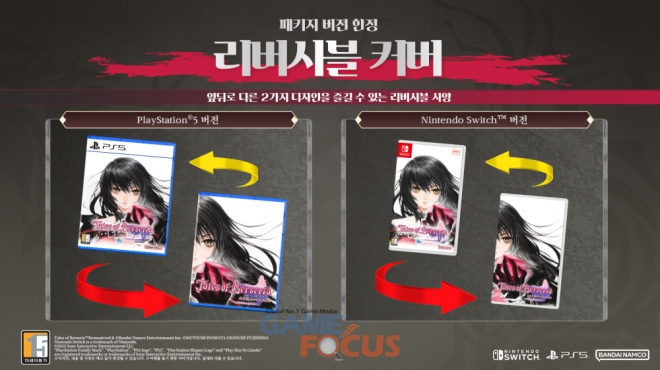 ‘테일즈 오브 베르세리아 리마스터’(한국어판)의 패키지 버전 구매 시, 앞뒤로 다른 2가지 디자인을 즐길 수 있는 리버시블 재킷을 즐길 수 있다.