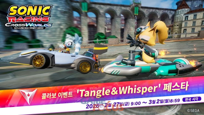 세가퍼블리싱코리아(대표 사이토 고)는 현재 절찬 판매 중인 『소닉 레이싱 크로스월드』의 무료 업데이트 'Tangle & Whisper'가 2026년 2월 26일(목) 오늘부터 배포된다고 밝혔다. Tangle과 Whisper는 IDW 코믹 시리즈 『소닉 더 헤지혹』에 등장하는 소닉의 든든한 동료로, 쾌활한 여우 원숭이와 과묵한 늑대 캐릭터이다.