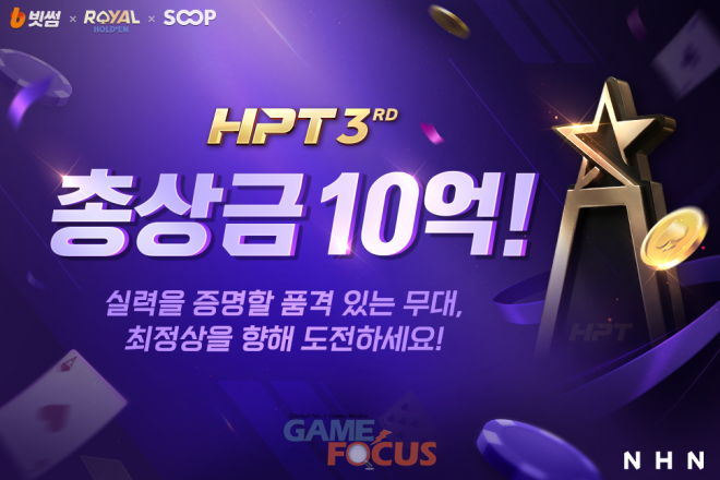 HPT는 ‘한게임 로얄홀덤’에서 홀덤 게임 실력을 겨루는 온라인 새틀라이트 토너먼트와 현장 개최 방식인 오프라인 토너먼트로 나뉘어 진행하는 홀덤 대회다. 빗썸이 주최사로 참여했으며, SOOP이 운영을 맡았다. 지난해 11월 ‘한게임 로얄홀덤’의 리뉴얼과 함께 한게임의 자체 브랜딩 오프라인 대회로 본격적인 막을 올렸다.