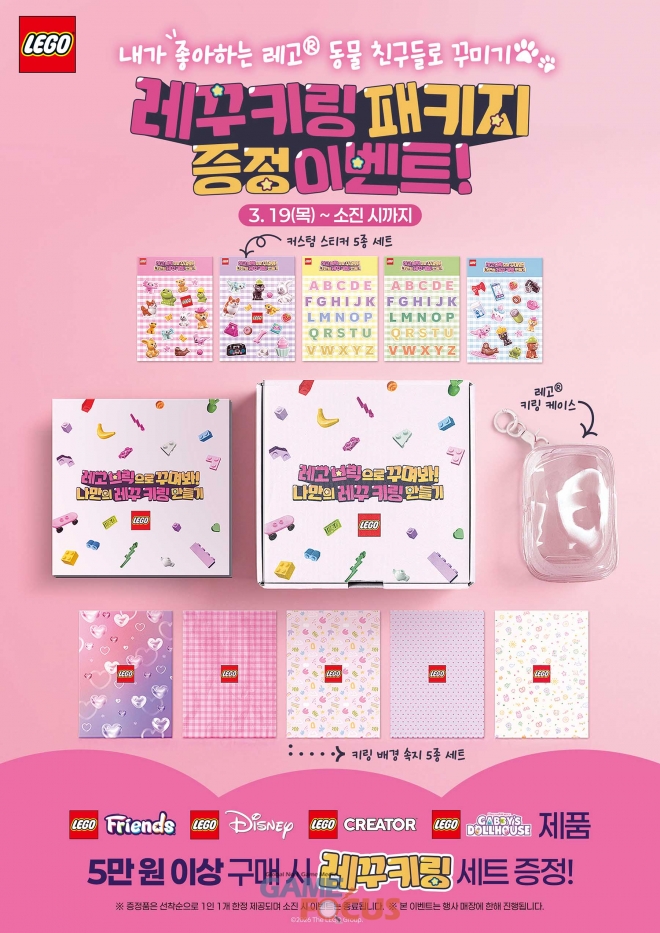 이에 레고코리아는 여아들이 레고 동물 테마 제품을 통해 창작의 즐거움을 경험할 수 있는 ‘레꾸키링 패키지’ 증정 이벤트를 전국 온오프라인 매장에서 실시한다. 레고 ‘프렌즈’, ‘디즈니’, ‘크리에이터’, ‘개비의 매직 하우스’ 제품을 5만 원 이상 구매 시 나만의 커스텀 키링을 만들 수 있는 패키지를 증정한다.