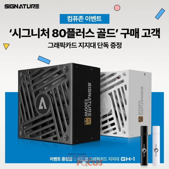 행사 대상 제품은 AONE 시그니처 골드 시리즈 전 라인업으로, 750W, 850W, 1000W, 1300W 출력 구간의 블랙 및 화이트 모델이 모두 포함된다. 구매 시 모델 및 색상에 따라 GH-1 블랙 또는 화이트 제품이 증정된다.