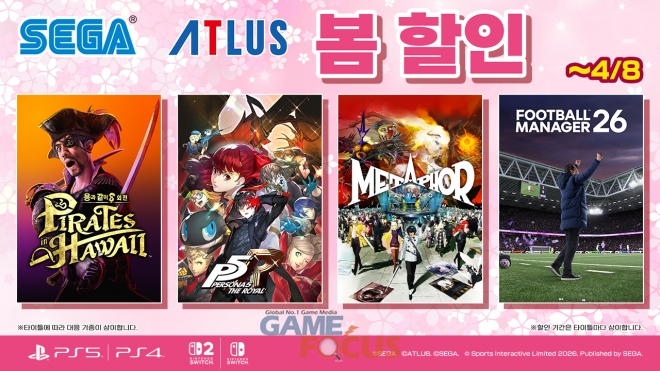 세가퍼블리싱코리아(대표 사이토 고)는 PlayStation™Store 및 닌텐도 e숍에서 판매 중인 일부 PlayStation®5/PlayStation®4/Nintendo Switch™/Nintendo Switch™ 2용 타이틀을 기간 한정으로 특별 가격에 판매하는 'SEGA 봄 할인' 프로모션이 진행 중이라고 밝혔다.