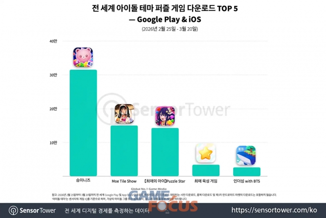 카카오게임즈가 퍼블리싱하고 SM 엔터테인먼트의 K팝 아티스트 IP를 활용한 모바일 퍼즐 게임 '슴미니즈'가 출시 초반 글로벌 시장의 여러 지표에서 좋은 성과를 보이고 있다. 특히 다운로드 측면에서는 아이돌 테마 퍼즐 게임 중 1위를 차지하며, 팬덤 기반 게임 시장에서의 가능성을 보여주고 있다고 센서타워는 밝혔다.