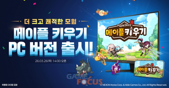 (주)넥슨(공동 대표 강대현∙김정욱)은 26일 자사와 에이블게임즈(대표 김동우)가 공동 개발한 모바일 방치형 RPG ‘메이플 키우기(MapleStory : Idle RPG)’의 PC 버전 베타 서비스를 시작한다.