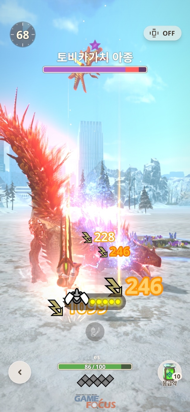 다만 공중 부양을 이어가는 방법이 이 게임 특유의 쉬운 한손 조작이라 어려운 편은 아니지만 화려하게 날아다니는 것 같은 액션이 처음부터 가능하지는 않아 어느 정도 연습이 필요해 보인다. 낮은 몬스터 구간 또는 트레이닝으로 나만의 조작 루틴을 어느 정도 익히고 높은 몬스터에 도전하면 좋을 듯 싶다.