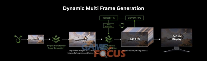 이러한 향상된 신규 기능의 조합은 가장 부드러운 패스 트레이싱 게이밍 경험을 제공하며, 4K 240Hz OLED 게이밍 디스플레이의 잠재력을 극대화한다. 또한 초고주사율 1080p, 1440p 디스플레이 사용자와 지싱크 펄사(G-SYNC Pulsar) 사용자도 다이내믹 멀티 프레임 생성 6배 모드를 통해 디스플레이 성능을 최대한 활용할 수 있어 더욱 향상된 경험을 할 수 있다.