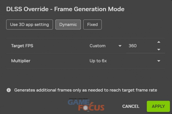 고정 모드는 기존 엔비디아 앱에서 제공되던 멀티 프레임 생성 옵션과 동일하게, 사용자가 선택한 프레임 생성 배율로 작동한다.