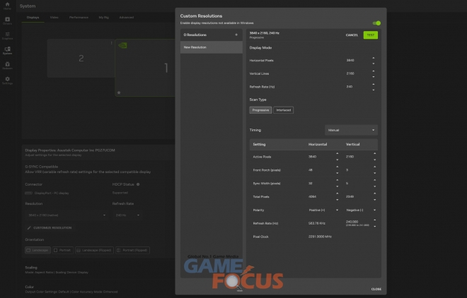 고급 사용자는 커스텀 디스플레이 해상도를 생성하고 사용해 디스플레이 오버클럭을 할 수 있다. 마찬가지로 고전 게이머는 클래식 시스템과 타이틀을 보다 정확하게 표현할 수 있다.