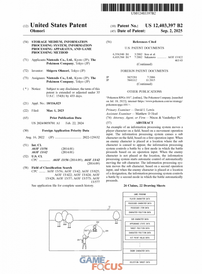주요 외신의 보도에 따르면, 미국 특허상표청은 닌텐도가 출원한 '서브 캐릭터를 소환해 전투시키는 시스템(특허번호 US 12,403,397)'의 26개 청구항 전체에 대해 '비최종 거절(Non-final rejection)' 판정을 내렸다. 담당 검토관은 해당 기술이 완전히 새로운 발명이 아니라 기존에 이미 존재하던 기술들의 조합으로 충분히 유추 가능한 '선행 기술(Prior Art)'의 범주에 해당한다고 판단해 이 같은 결정을 내린 것으로 알려졌다.
