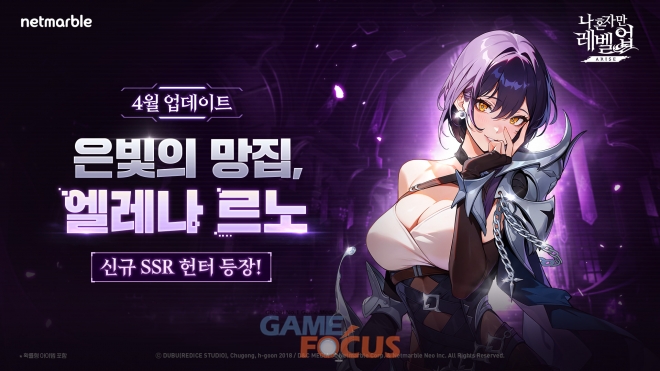 넷마블(대표 김병규)은 액션 게임 '나 혼자만 레벨업:어라이즈'(개발사 넷마블네오)에서 신규 SSR 헌터 '엘레나 르노'를 추가하는 등 업데이트를 진행했다고 9일 밝혔다.