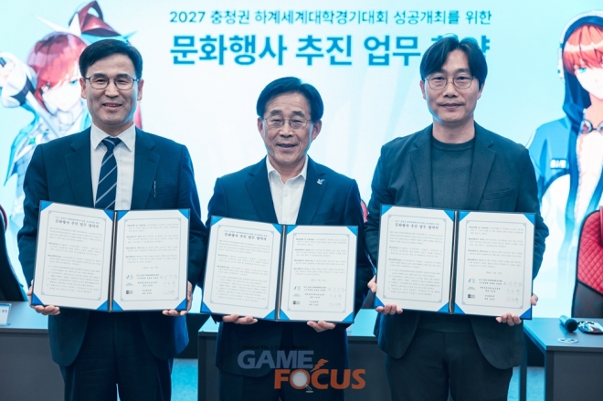 이번 협약은 ‘이터널 리턴 리그 마스터즈 시즌10 파이널’ 행사와 연계해 진행됐으며, 2027 충청권 하계세계대학경기대회의 성공적인 개최를 지원하고 대학스포츠의 e스포츠 확장 및 문화 확산을 도모하기 위해 마련됐다