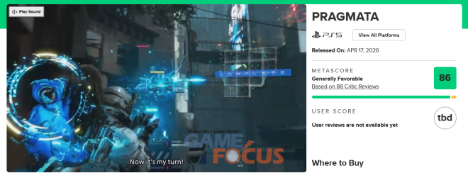 '프래그마타'는 4월 17일 PC, PS5, XBOX Series X|S로 출시되며, 닌텐도스위치2 버전은 24일 만나볼 수 있다. 메타스코어 PC 버전은 88점(31개 기준), XBOX 버전 85점(9개 기준), 닌텐도스위치 버전 89점(16개 기준)을 기록 중이다.
