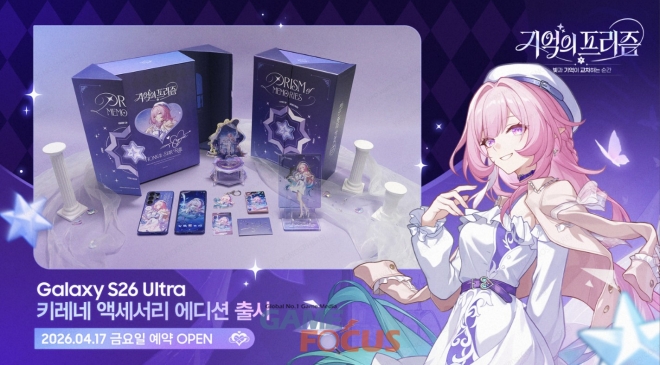 특히 ‘붕괴: 스타레일’의 인기 캐릭터 ‘키레네’ 콘셉트로 제작된 갤럭시 S26 울트라 LD 마그넷 케이스, 아크릴 오르골, 아크릴 스마트폰 거치대, 마그넷 스탠드 월렛, SD 아크릴 키링 등 액세서리 품목으로 구성되어 호응이 예상된다.