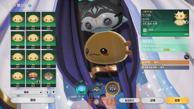 원하는 옵션을 최대 2개까지 잠글 수 있는 재화 ‘퓨레’의 수급은 극도로 제한적이고(스토리 엔딩을 보고 나니 30개도 채 되지 않았다) 시스템은 복잡하며 원하는 몬스터링을 찾아내는 필터 기능도 부족함이 있다. 옵션을 하나하나 확인해야 하는 불편함이 있어서 오죽하면 '병아리 감별사 게임'이라는 이용자들의 푸념이 나올까 싶다. 입수는 쉽게, 종결은 어렵게 하는 방향이 좋을 것 같다. 어떤 식으로든 덜어내고 개선하는 조치가 필요하다.