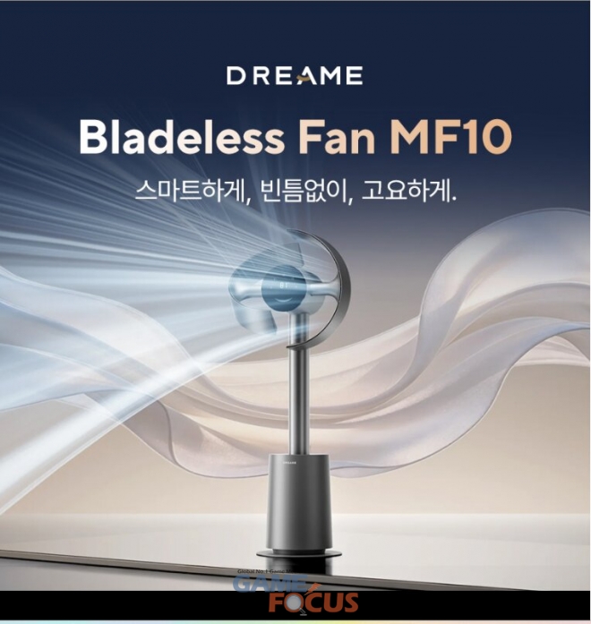 MF10 블레이드리스 팬은 드리미가 CES 2026에서 공개한 차세대 스마트 선풍기다. 이중 회전 구조 기반의 270도 공간 공기 순환 기술(GyroWing™)을 적용해 좌우·상하로 동시에 회전하는 공기 흐름을 통해 실내 전체에 바람을 고르게 전달해, 기존 선풍기의 국소 냉방 한계를 개선했다.